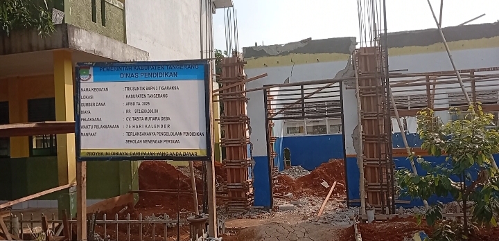 Pembangunan gedung sekolah SMP 3 negeri Tigaraksa yang di biayai dari pajak retribusi rakyat di sorot publik atas aset milik dinas pendidikan tersebut dimana aset aset yang dibongkar hilang sekejap tanpa di ketahui juntrungannya.