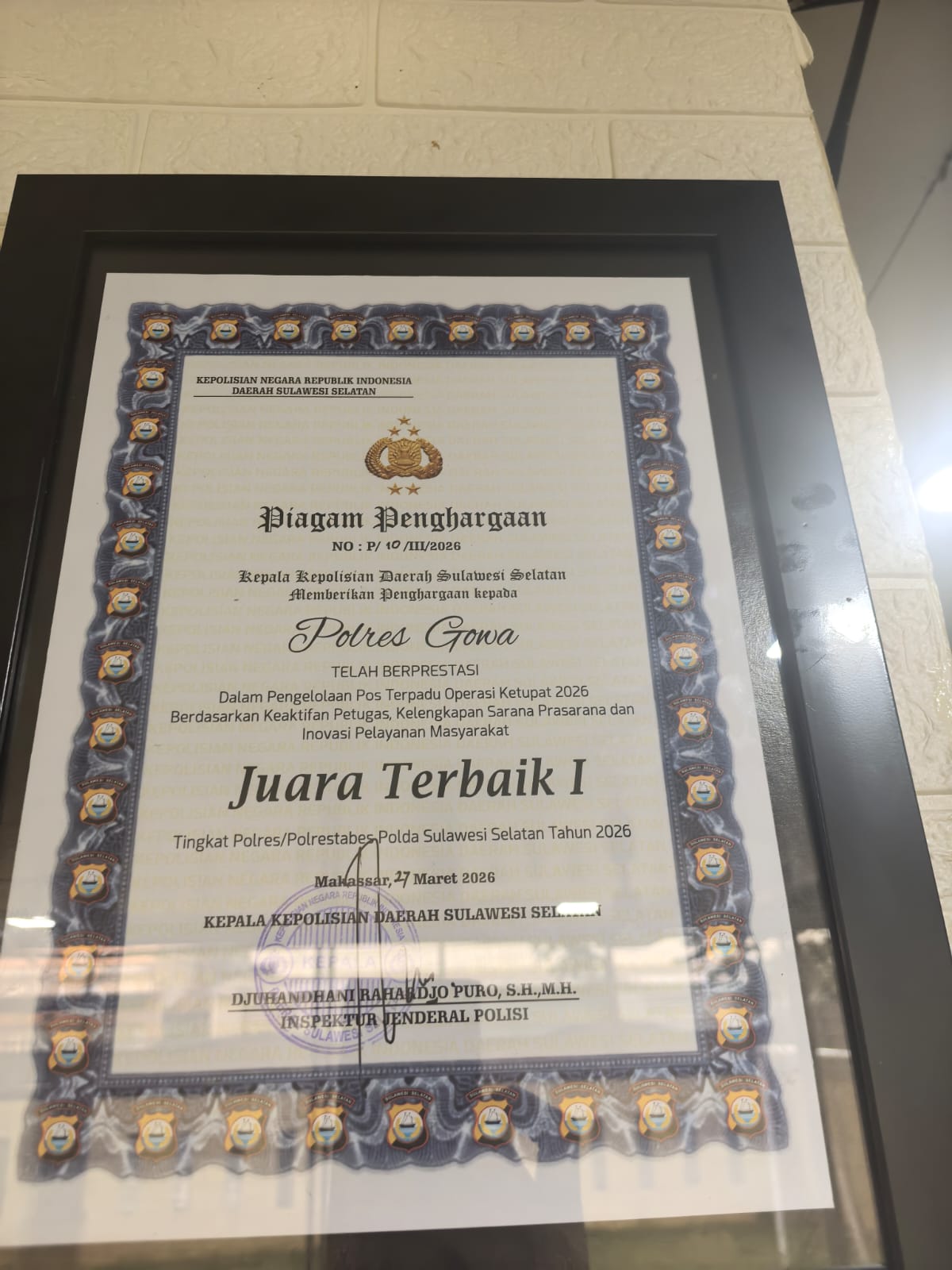 Capaian ini diraih berkat keunggulan Polres Gowa dalam aspek pengelolaan Pos Terpadu selama Operasi Ketupat 2026. Penilaian mencakup tiga indikator utama, yakni keaktifan personel di lapangan, kelengkapan sarana dan prasarana, serta inovasi pelayanan publik selama arus mudik dan arus balik Idul Fitri.