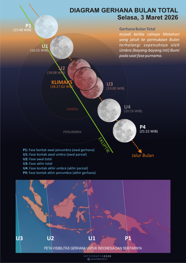 http://Rajawali Times Tv.com, TANGERANG SELATAN — Fenomena alam gerhana bulan kembali terjadi pada Senin malam, 3 Maret 2026, dan dapat disaksikan oleh masyarakat di berbagai wilayah Indonesia.