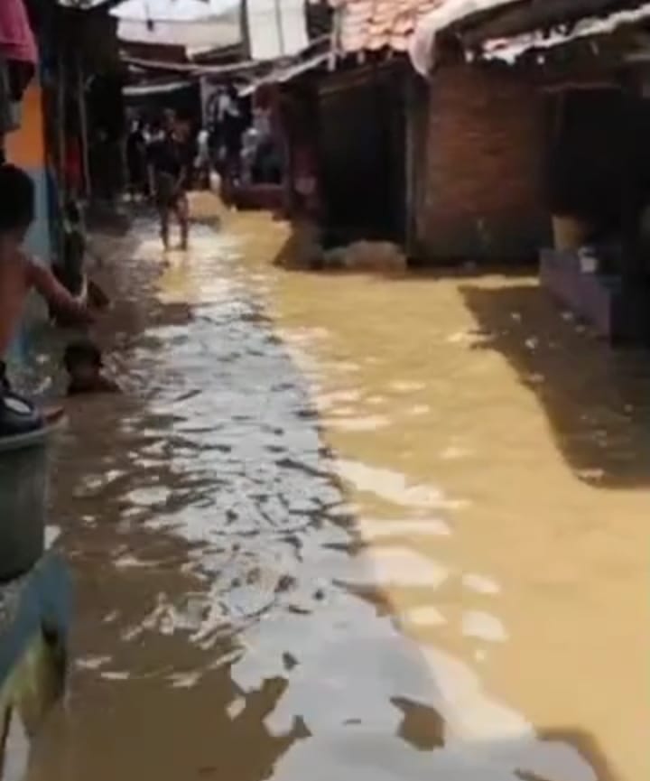 Salah seorang warga, Mul, saat dikonfirmasi media mengatakan banjir terjadi akibat meluapnya aliran Kali CBL setelah hujan deras mengguyur dalam waktu cukup lama.