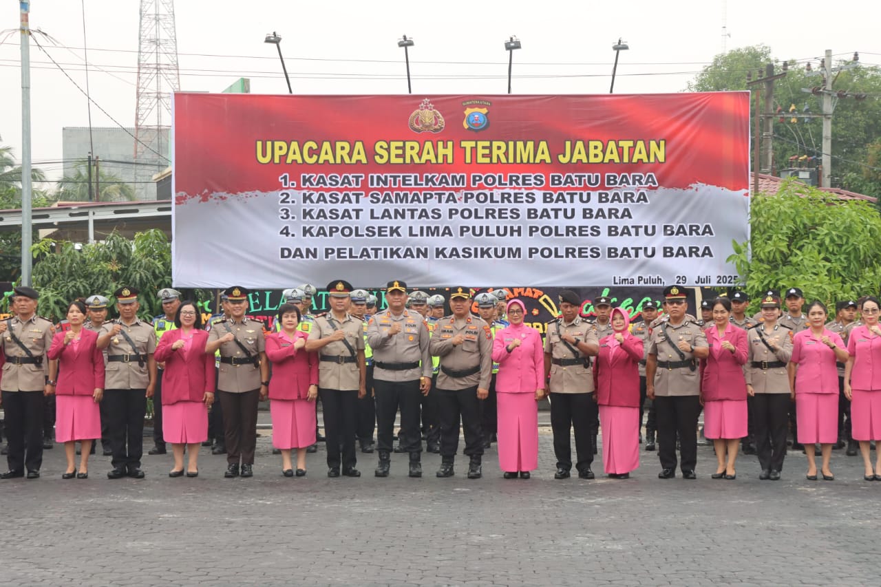 http://Rajawali Times tv.com Batu Bara, Polres Batu Bara menggelar Upacara Serah Terima Jabatan dan Pelantikan Pejabat Utama pada hari Selasa, 29 Juli 2025, pukul 08.00 WIB di Mako Polres Batu Bara. Upacara ini dipimpin oleh Kapolres Batu Bara, AKBP DOLY NELSON H.H. NAINGGOLAN, S.H., M.H.