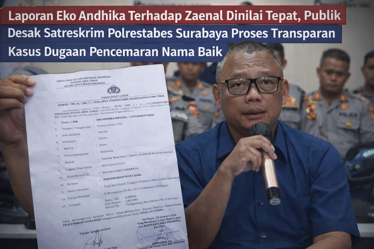 Laporan Eko Andhika Terhadap Zaenal Dinilai Tepat, Publik Desak Satreskrim Polrestabes Surabaya Proses Transparan Kasus Dugaan Pencemaran Nama Baik