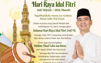 “Selamat Hari Raya Idul Fitri 1447 H / 2026 M, Mohon Maaf Lahir dan Batin.” Red
