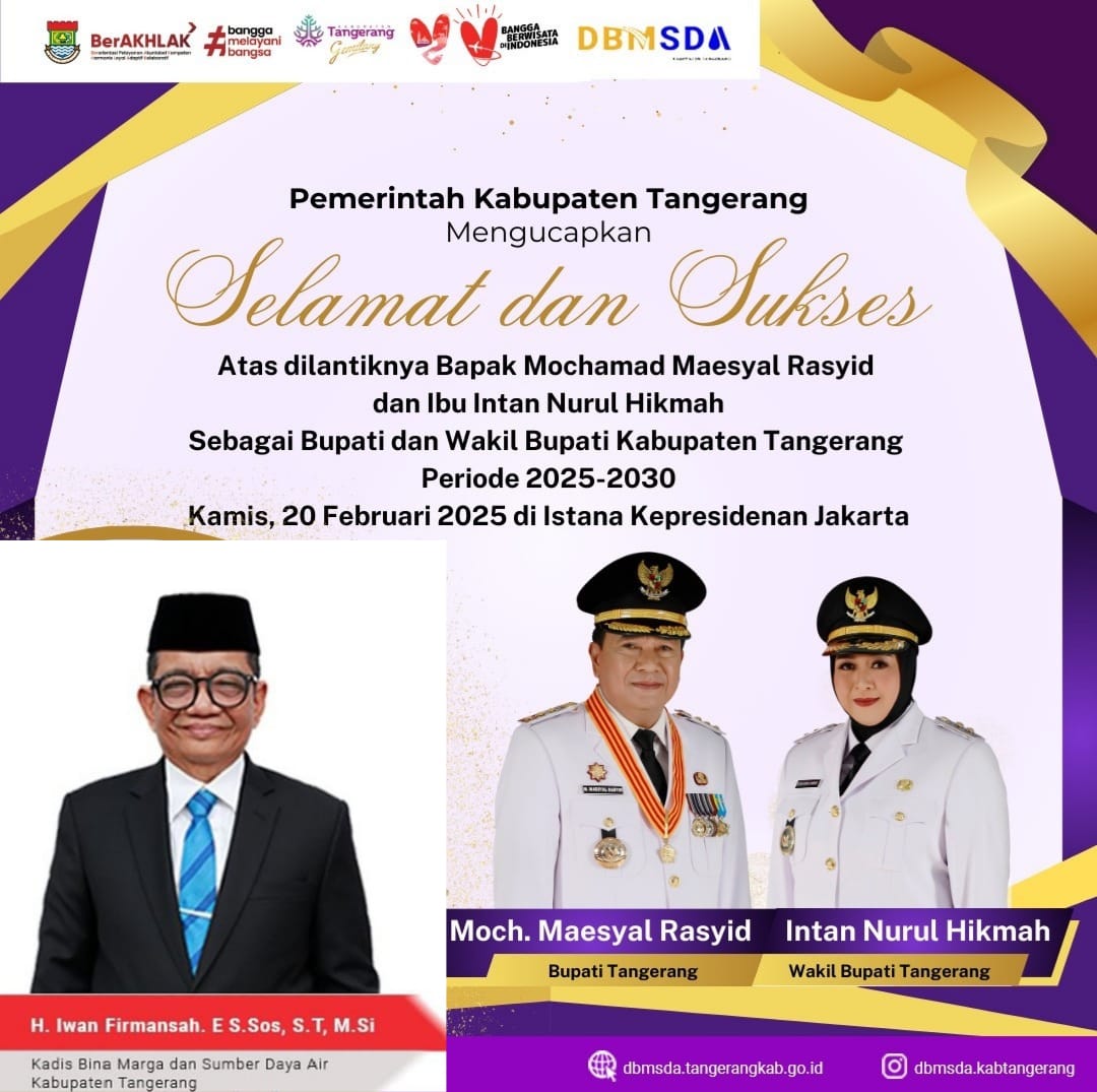 http://Rajawali Times tv.com Kabupaten Tangerang, Kepala Dinas DBMSDA dan Jajaran serta Staf Mengucapkan Selamat Atas Pelantikan Bupati Moch Mahesyal Rasyid dan Intan Nurul Hikmah Wakil Bupati Tangerang Kamis 20 Februari 2025 Pada Periode 2025-2030 di Istana Negara.