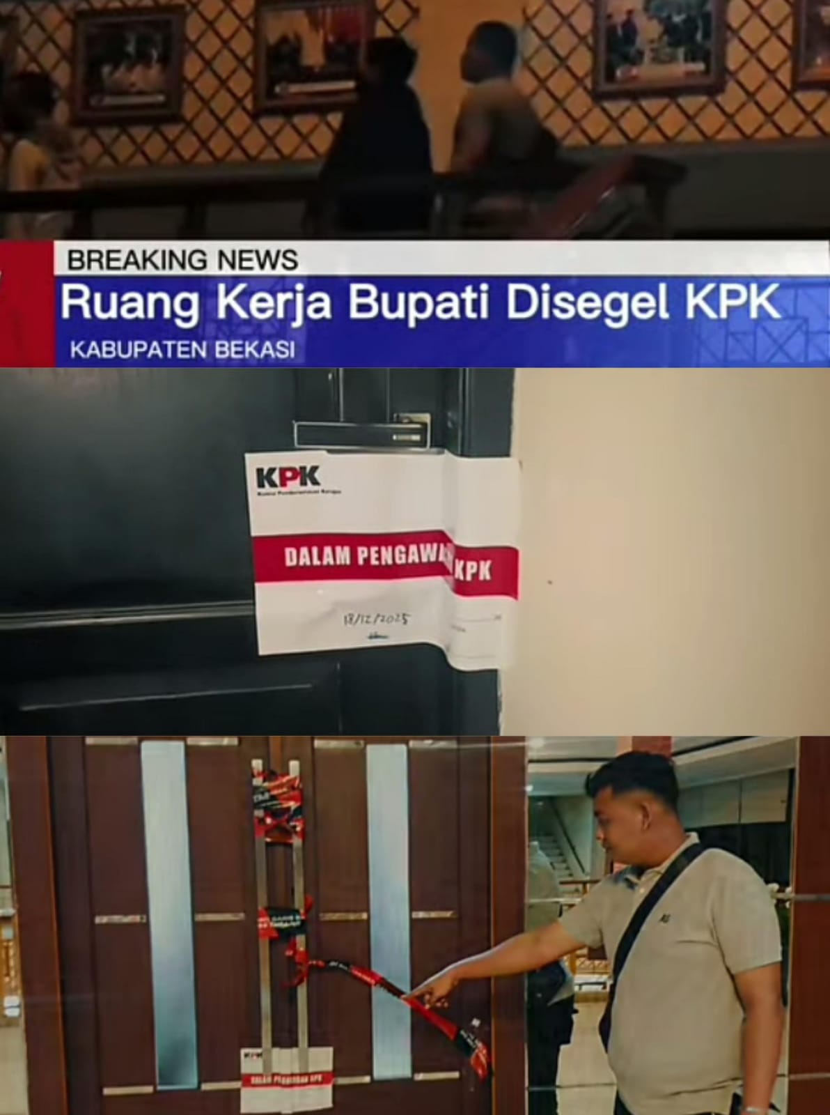 Di sisi lain, berdasarkan informasi yang dilansir Antara, tiga orang penyidik KPK terlihat menyegel dua akses pintu ruang kerja Bupati Bekasi, Ade Kuswara Kunang, pada Kamis sekitar pukul 19.00 WIB.