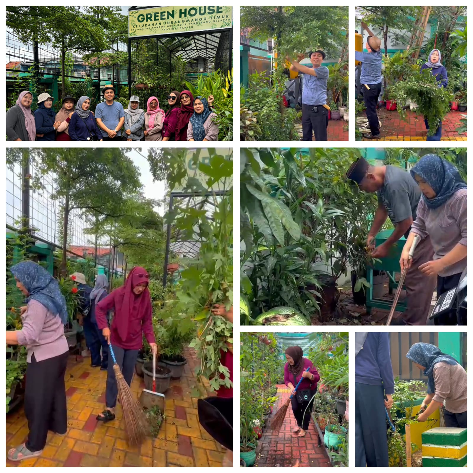 Kegiatan kerja bakti tersebut dilaksanakan di area Green House Kelurahan Jurang Mangu Timur pada hari kerja dan diikuti oleh kader PKK serta perangkat kelurahan. Fokus kegiatan meliputi pembersihan lingkungan, perawatan tanaman, serta penataan area Green House agar tetap asri dan produktif.