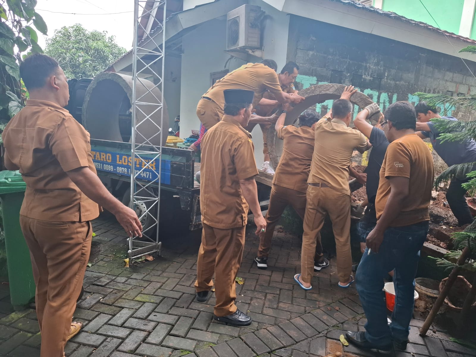 http://Rajawali Times Tv. Com, TANGERANG SELATAN – Lurah Parigi, Kecamatan Pondok Aren, H. Edi, bersama jajaran staf kelurahan, RT/RW, serta warga setempat bergotong royong membangun teba sampah organik di belakang halaman Kantor Kelurahan Parigi, Kecamatan Pondok Aren, Kota Tangerang Selatan.