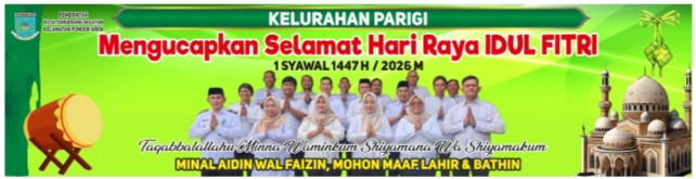 “Atas nama pribadi dan jajaran Kelurahan Parigi, kami mengucapkan Selamat Hari Raya Idul Fitri 1447 Hijriyah/2026 Masehi. Mohon maaf lahir dan batin,” ujar H. Edi Suherman.
