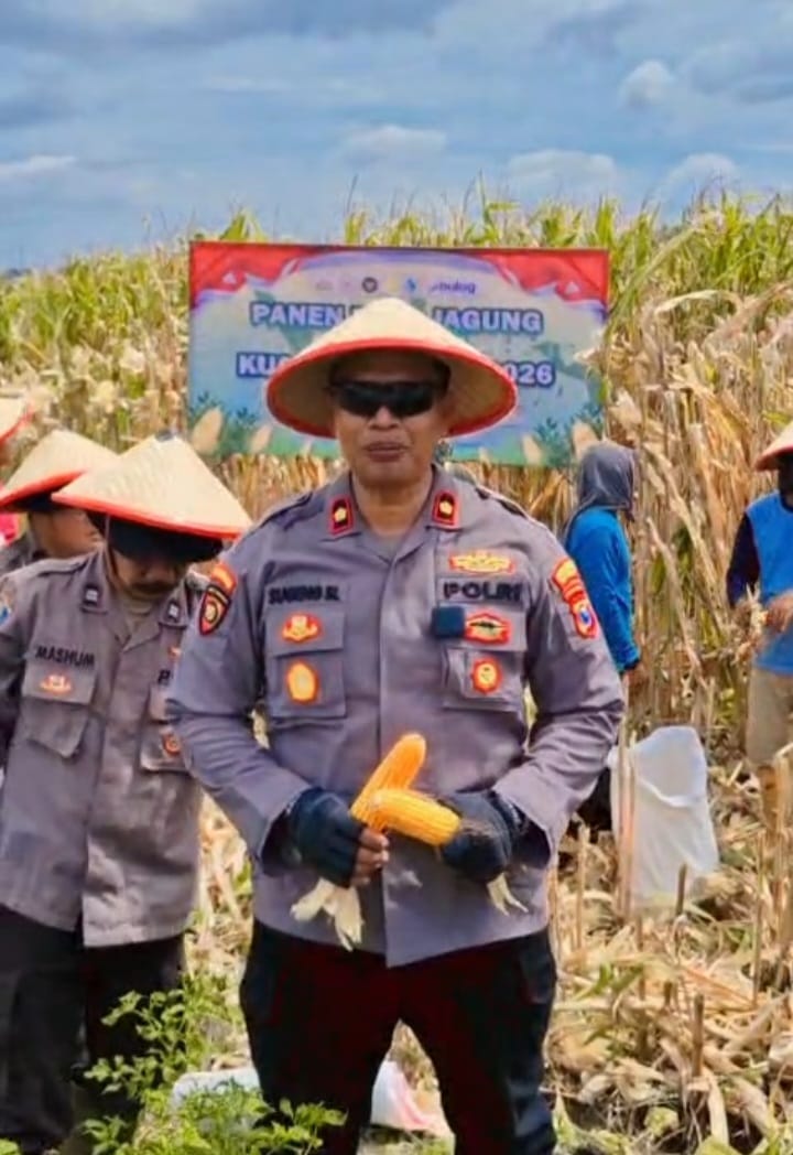Kegiatan panen raya jagung tersebut dipimpin langsung oleh Kapolsek Balongbendo, KOMPOL Sugeng Sulistiyono, S.H., M.H., dan diikuti oleh anggota Polsek Balongbendo serta kelompok petani setempat. Kegiatan ini merupakan bagian dari program panen serentak kuartal I tahun 2026 yang dilaksanakan sebagai bentuk dukungan terhadap upaya pemerintah dalam memperkuat ketahanan pangan nasional.