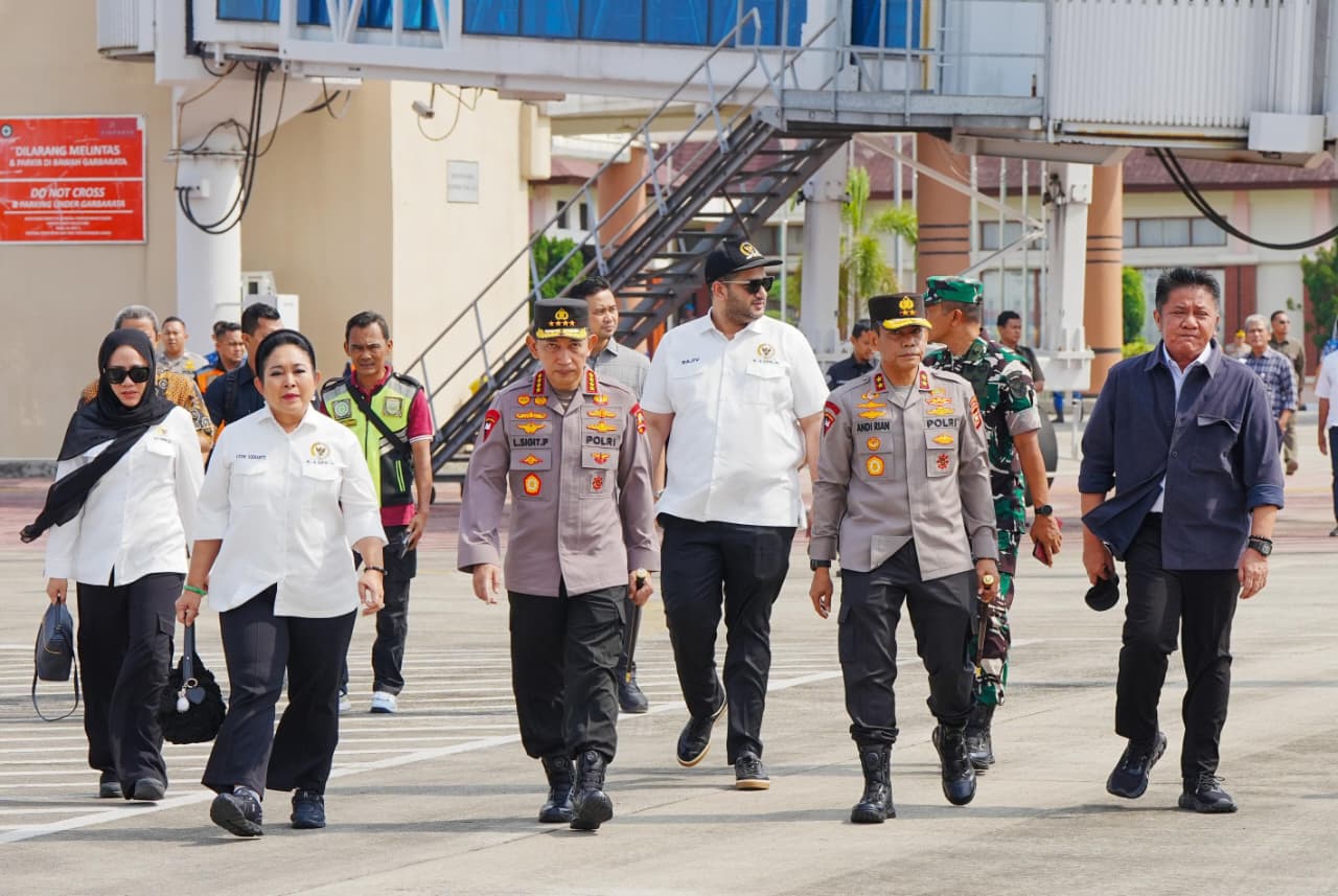 OKU Timur – Kapolri beserta Ketua Komisi IV DPR RI, Menko Pangan, Kepala Badan Pangan Nasional, dan Dirut Bulog terpantau tiba di Mahmud Badaruddin II dari Palembang dilanjutkan menaiki helikopter Polri menuju Kab. OKU Timur, Prov. Sumsel pada Sabtu, 27 September 2025.
