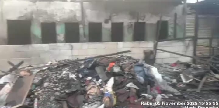 Kendati Sebelumnya Kebakaran yang terjadi sekitar pukul 05.00 WIB itu menghanguskan sedikitnya 45 lapak pedagang yang mayoritas menjual sepatu dan pakaian. Hampir seluruh lapak rata dengan tanah, menyisakan hanya rangka besi dan arang hitam bekas kebakaran.