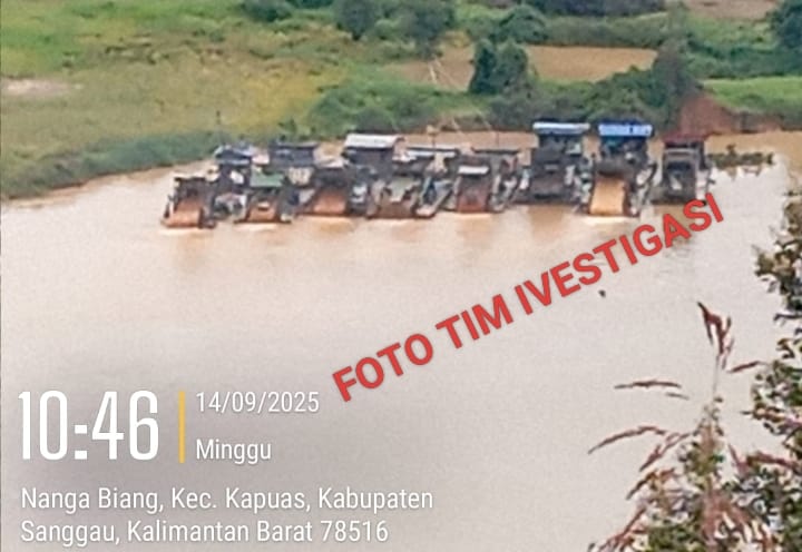 http://Rajawali Times tv.com Sanggau, Kalimantan Barat – 14 September 2025 Aktivitas Pertambangan Emas Tanpa Izin (PETI) kembali mencoreng wajah Sungai Kapuas. Tim investigasi awak media menemukan keberadaan puluhan mesin sedot emas yang beroperasi di aliran sungai Desa Nanga Biang, Kecamatan Kapuas, Kabupaten Sanggau, pada Minggu (14/9/2025).