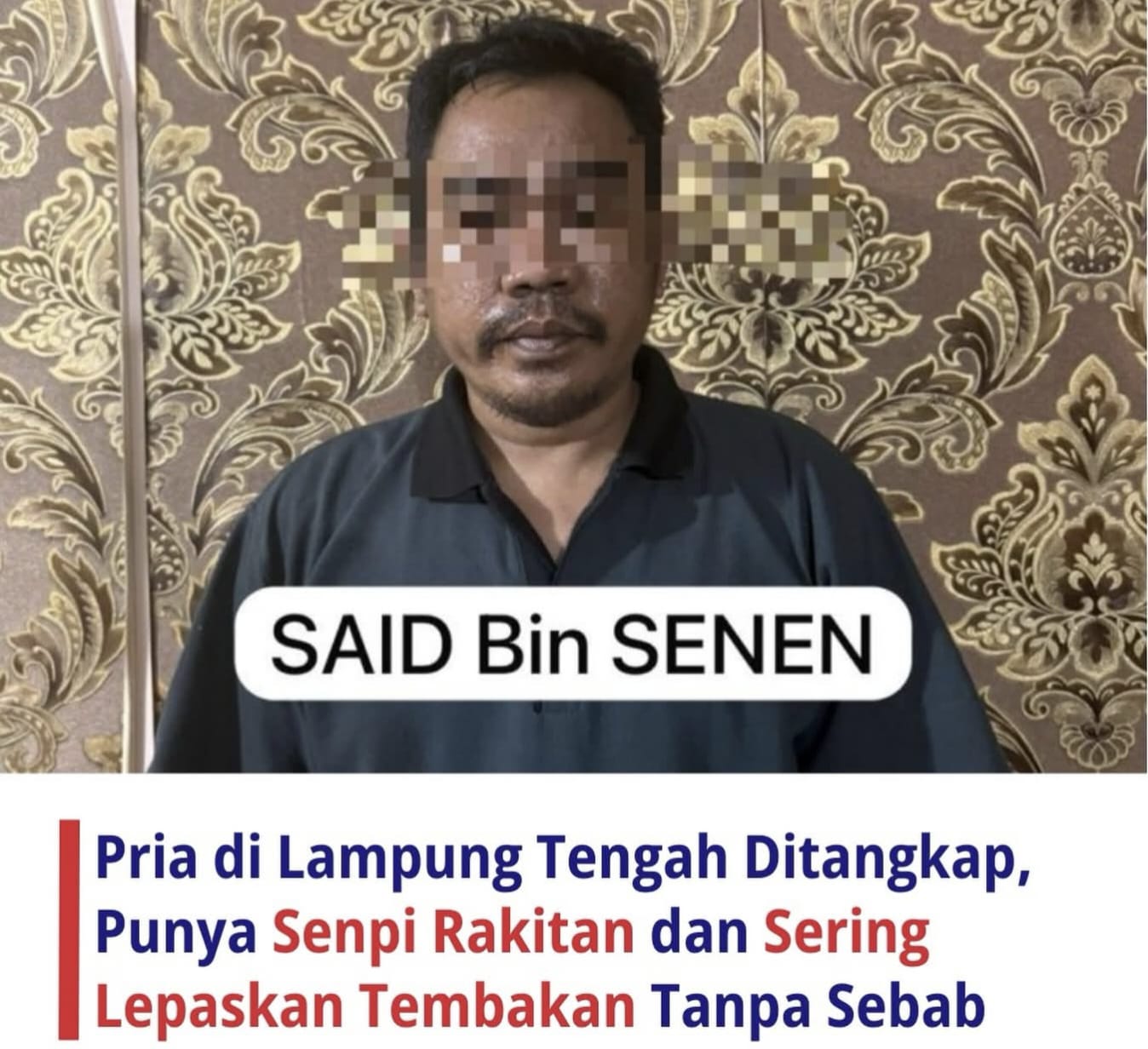Pria itu bernama Said (40). Ia ditangkap di rumahnya di Dusun Padang Guci, Kampung Gedung Harta, Kecamatan Selagai Lingga, Lampung Tengah pada Selasa (20/1).