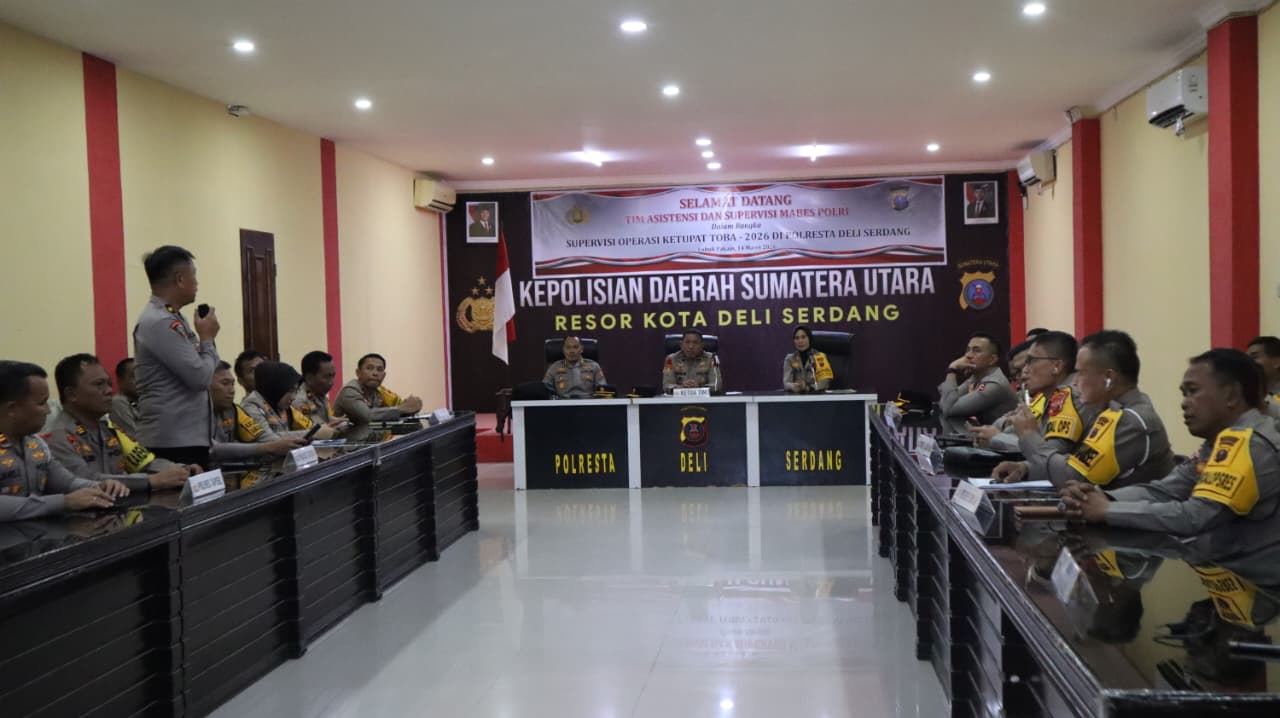 http://Rajawali Times Tv. Com, Deli Serdang – Kapolresta Deli Serdang Kombes Pol Hendria Lesmana, SIK, M. Si, melalui Waka Polresta Deli Serdang AKBP Juliani Prihartini, SIK, MH, menyambut kunjungan kerja (Kunker) Tim Asistensi dan Supervisi Mabes Polri di aula Sat Lantas Polresta Deli Serdang, Sabtu (14/3/26).