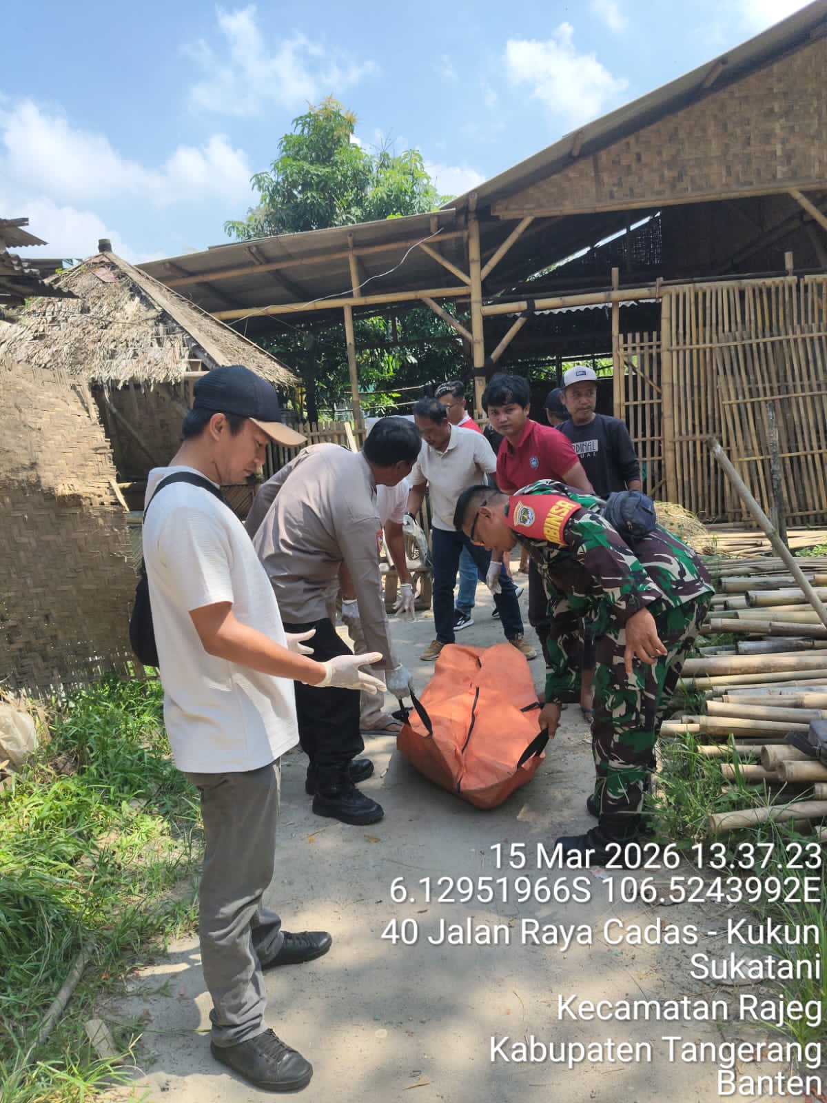 http://Rajawali Times Tv. Com, Kabupaten Tangerang – Warga Kampung Kukun RT 001/009, Kelurahan Sukatani, Kecamatan Rajeg, Kabupaten Tangerang digegerkan dengan penemuan sesosok pria tanpa identitas yang ditemukan meninggal dunia di dalam sebuah gubuk pada Minggu (15/3/2026) sekitar pukul 12.00 WIB.