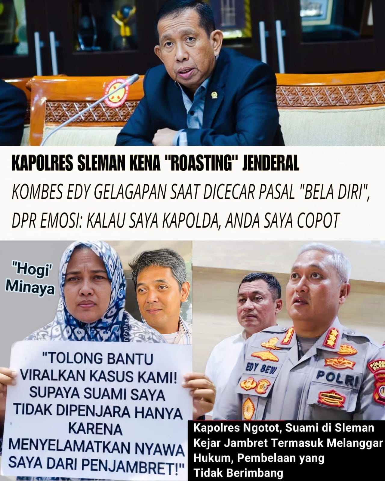 Kapolres Sleman menjawab bahwa aturan tersebut berlaku sejak 2 Januari 2026. Namun jawaban tersebut dinilai tidak tegas dan mencerminkan kurangnya penguasaan materi hukum pidana yang menjadi dasar tugas kepolisian.