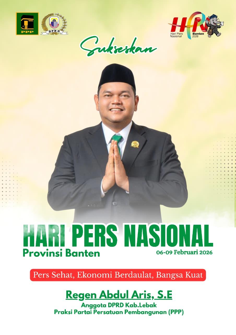 http://Rajawali Times tv.com Lebak – Anggota Dewan Perwakilan Rakyat Daerah (DPRD) Kabupaten Lebak dari Fraksi Partai Persatuan Pembangunan (PPP), Regen Abdul Aris, S.E., mengajak seluruh elemen masyarakat untuk sukseskan perayaan Hari Pers Nasional (HPN) Provinsi Banten tahun 2026 yang berlangsung pada 06 hingga 09 Februari.
