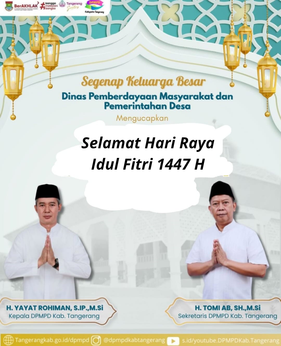 Segenap Keluarga Besar Pimpinan Jajaran dan Staf Dinas Pemberdayaan Masyarakat dan Pemerintah Desa Kabupaten Tangerang Mengucapkan Selamat Idul Fitri 1447 H Tahun 2026