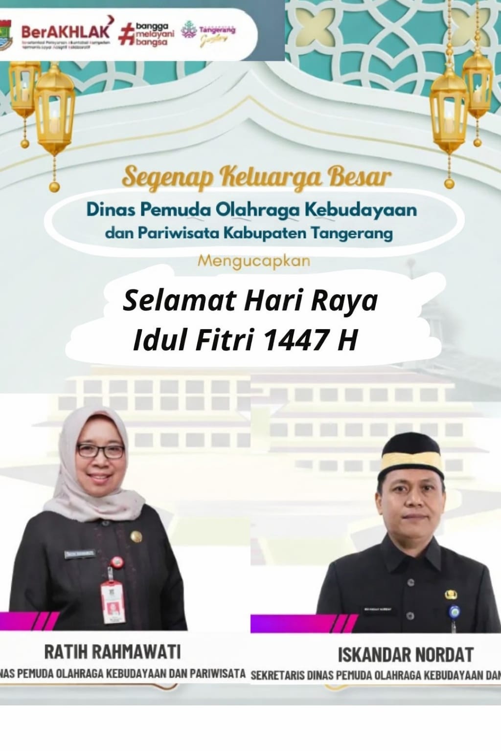Segenap Keluarga Besar Pimpinan Jajaran dan Staf Dinas Pemuda Olahraga Kebudayaan dan Pariwisata Kabupaten Tangerang Mengucapkan Selamat Idul Fitri 1447 H Tahun 2026