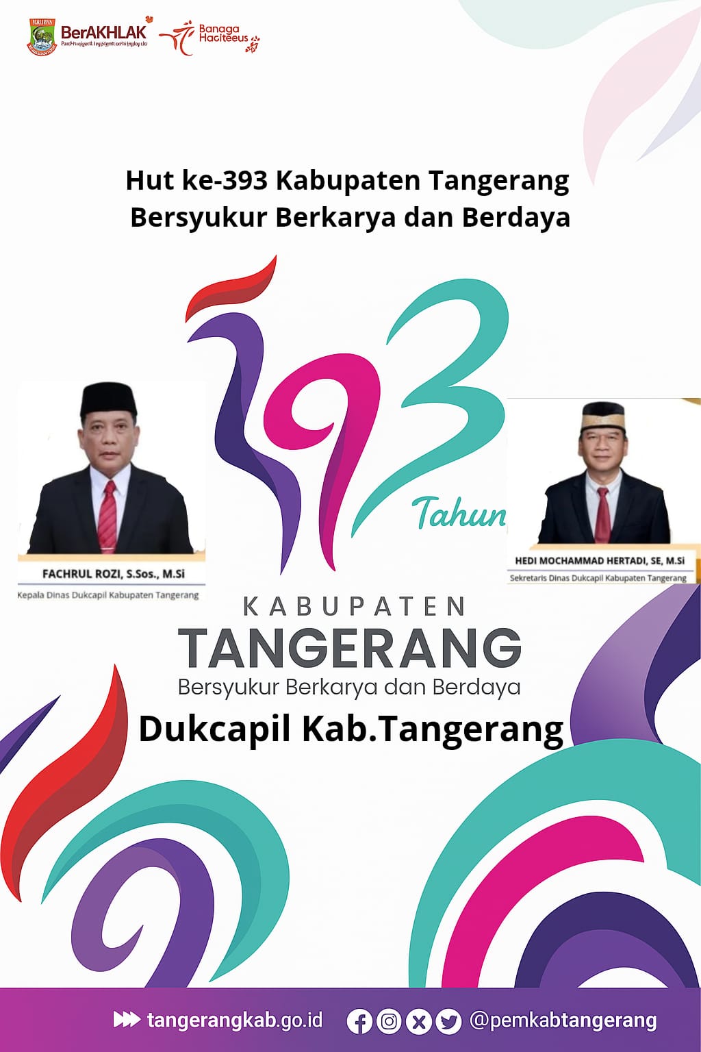 http://Rajawali Times tv.com Kabupaten Tangerang, Segenap Keluarga Besar Pimpinan Jajaran dan Staff Dinas Disdukcapil Kabupaten Tangerang Mengucapkan Selamat HUT kabupaten Tangerang ke 393, Bersyukur Berkarya dan Berdaya.