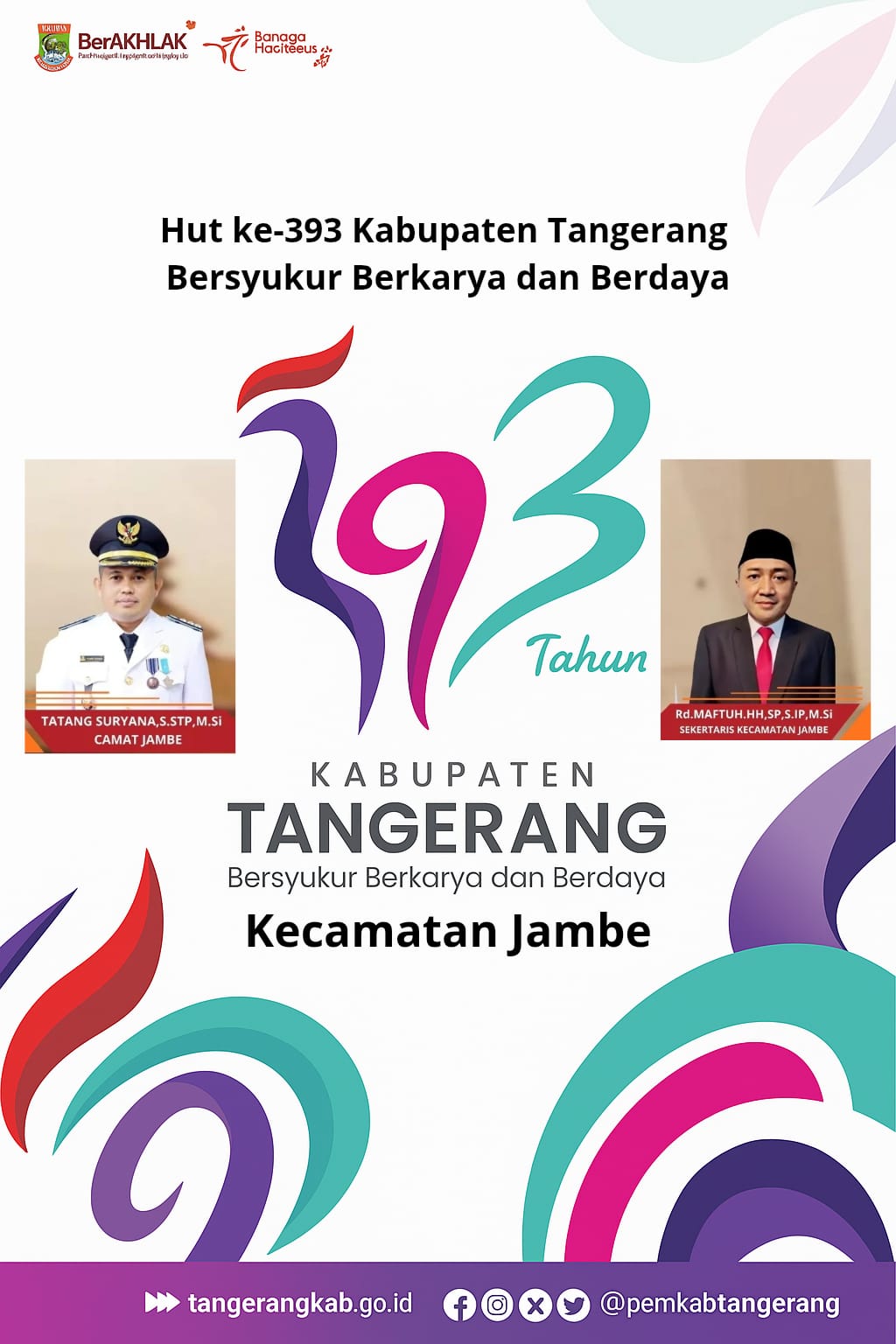 Segenap Pimpinan dan Jajaran Serta Staff Kecamatan Jambe Mengucapkan HUT Kabupaten Tangerang ke 393 Bersyukur Berkarya dan Berdaya.