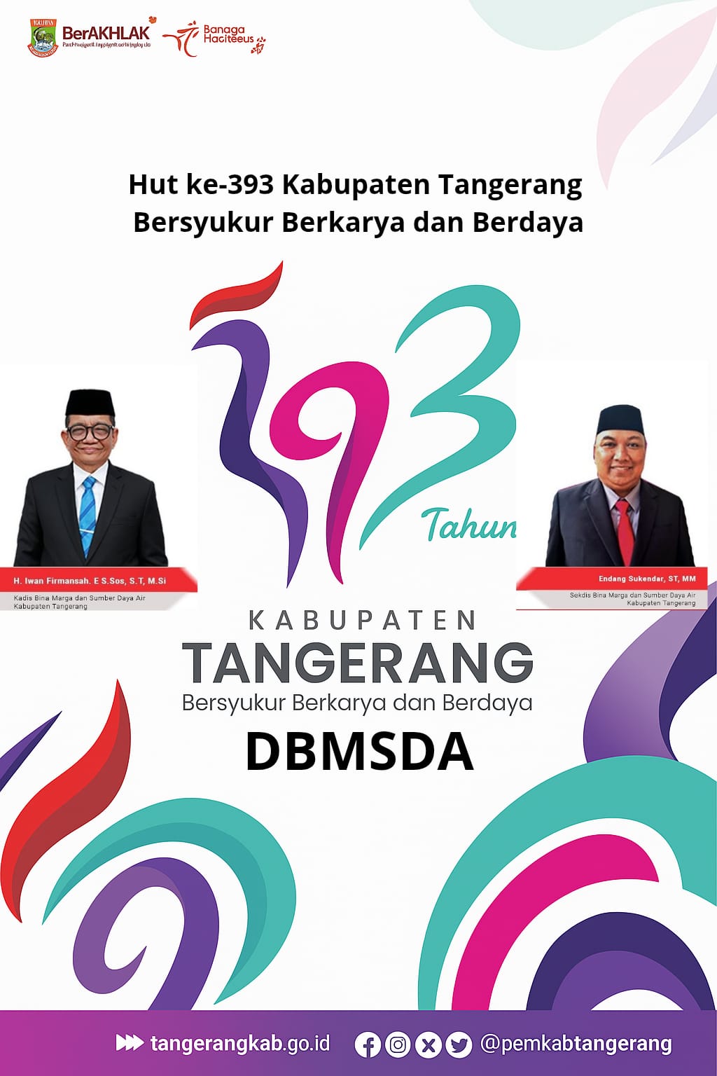 Segenap Pimpinan Jajaran dan Staf Dinas DBMSDA Kabupaten Tangerang Mengucapkan Selamat HUT Ke 393 Kabupaten Tangerang Bersyukur Berkarya dan Berdaya