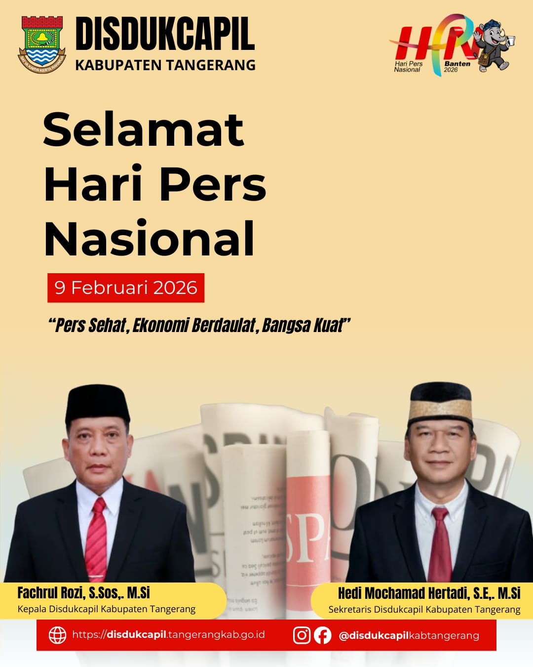 Beranda DAERAH Segenap Pimpinan, Jajaran dan Staf Disdukcapil Kabupaten Tangerang Mengucapkan Selamat Hari Pers DAERAHNEWSSegenap Pimpinan, Jajaran dan Staf Disdukcapil Kabupaten Tangerang Mengucapkan Selamat Hari Persrajawalitimesid@gmail.com1 min bacaFebruari 6, 2026Februari 9, 20267×Segenap Pimpinan, Jajaran dan Staf Disdukcapil Kabupaten Tangerang Mengucapkan Selamat Hari PersSebarkan artikel ini http://Rajawali Times tv.com Kabupaten Tangerang// Segenap Pimpinan, Jajaran dan Staf Disdukcapil Kabupaten Tangerang Mengucapkan Selamat Hari Pers. Denilo Post Views: 7 Pos TerkaitDAERAHDiduga Perselingkuhan Antar Pekerja Dapur MBG Desa Mumbang Jaya Bikin Warga Heboh DAERAHKontainer Terguling Timpa Sedan di Jalan Baru Karawang, Enam Penumpang Diduga TerjepitDAERAHSelamat Mengemban Amanah Perkuat Pengawasan, Tingkatkan PelayananDAERAHSatreskrim Polres Pesawaran Berhasil Tangkap Bandit Bersenjata Api: Kerap Resahkan WargaDAERAHBersama Jemaat Kristiani, Kapolsek Curug yang Baru Ajak Jaga Kerukunan dan KamtibmasDAERAHPra Rakorda PSI DPD Lebak Digelar di Malimping, King Naga Tegaskan: PSI Tak Tunduk Pada Penguasa Lebak, Berdiri Untuk Rakyat