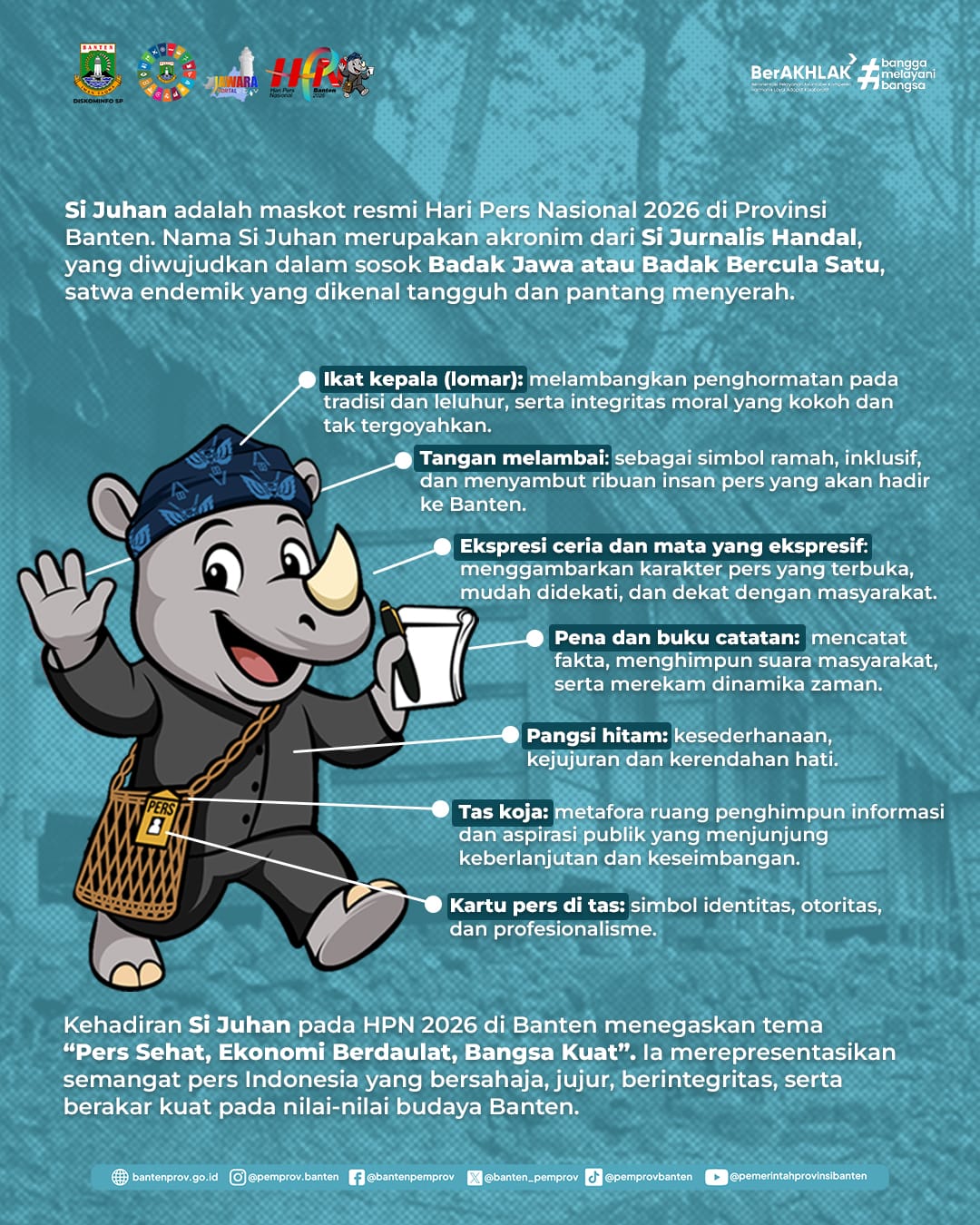 Terinspirasi dari ketangguhan Badak Jawa dan nilai luhur masyarakat Baduy, Si Juhan merepresentasikan pers yang: