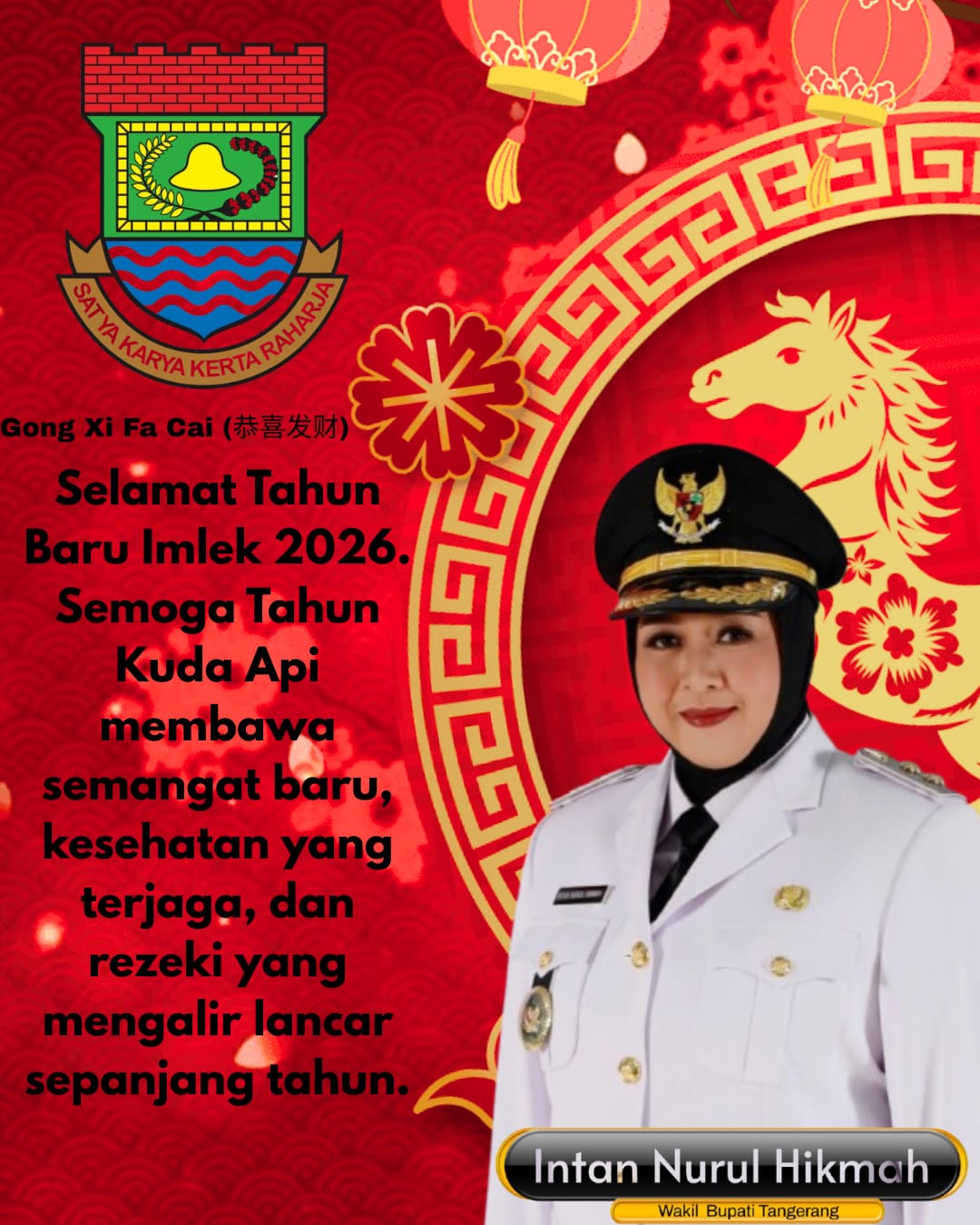 http://Rajawali Times tv.com Kabupaten Tangerang – Wakil Bupati Tangerang, Intan Nurul Hikmah, menyampaikan ucapan Selamat Tahun Baru Imlek 2026 kepada seluruh masyarakat Tionghoa yang merayakan. Ia mengajak seluruh elemen masyarakat menjadikan perayaan Imlek sebagai momentum untuk memperkuat persahabatan, mempererat kerja sama, serta menumbuhkan optimisme dalam membangun masa depan yang lebih baik.